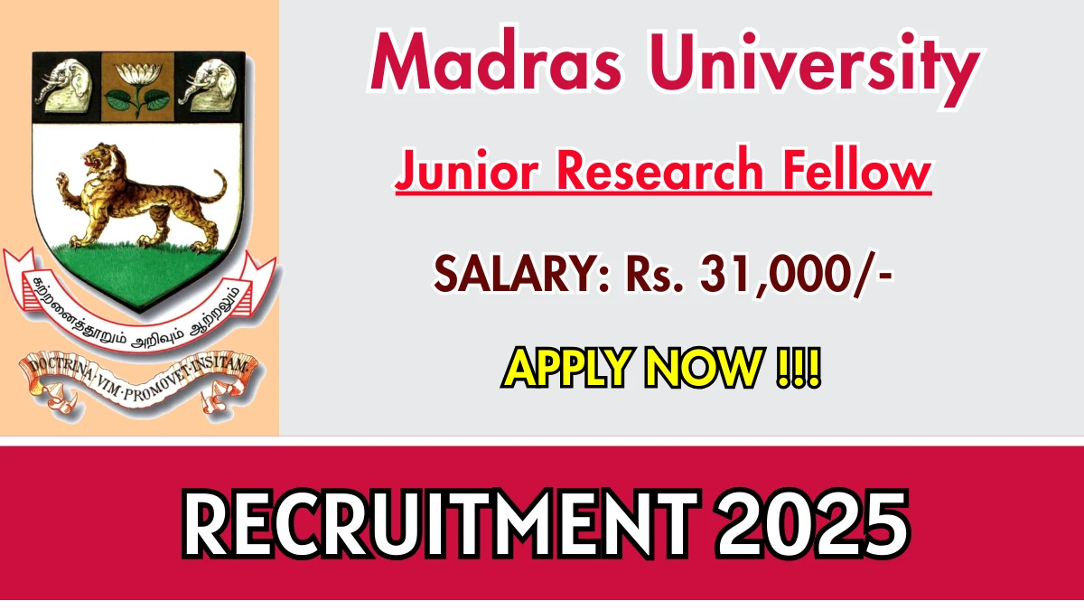 Madras University Recruitment 2025 The Madras University Recruitment 2025 for 01 posts of Junior Research Fellow. Candidates with M.Sc Can…
