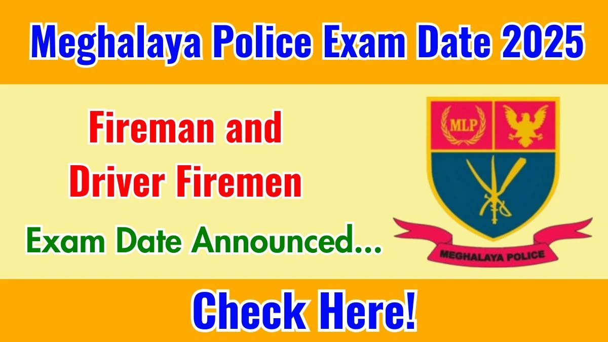 Meghalaya Police Exam Date 2025 out The Meghalaya Police has announced the Exam Date 2025 for the post of Fireman…