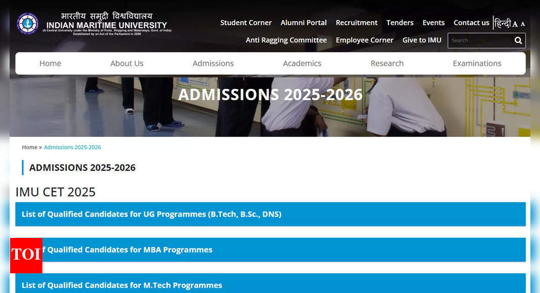 IMU CET May 2025 results announced for UG, MBA and M.Tech at imu.edu.in IMU CET 2025 result: The Indian Maritime…