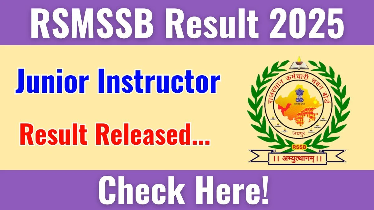RSMSSB Junior Instructor Result 2025 Released: The Rajasthan Subordinate and Ministerial Services Selection Board (RSMSSB) has officially declared the RSMSSB…