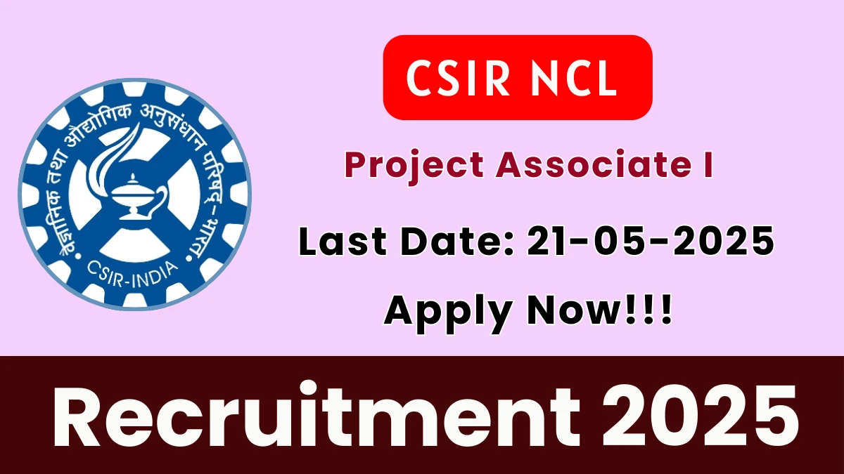 CSIR NCL Recruitment 2025 The National Chemical Laboratory (CSIR NCL) Recruitment 2025 for 01 posts of Project Associate I notification…