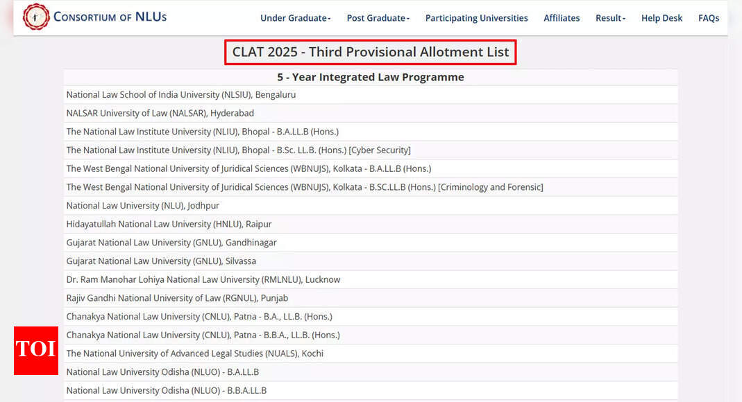 Final CLAT UG 2025 merit list out, check NLU-wise cut-offs and seat allotment details CLAT third merit list 2025: The…