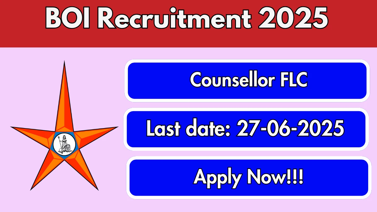 BOI Recruitment 2025 The Bank of India (BOI) Recruitment 2025 for 01 posts of Counsellor FLC. Candidates Can Apply Offline.…