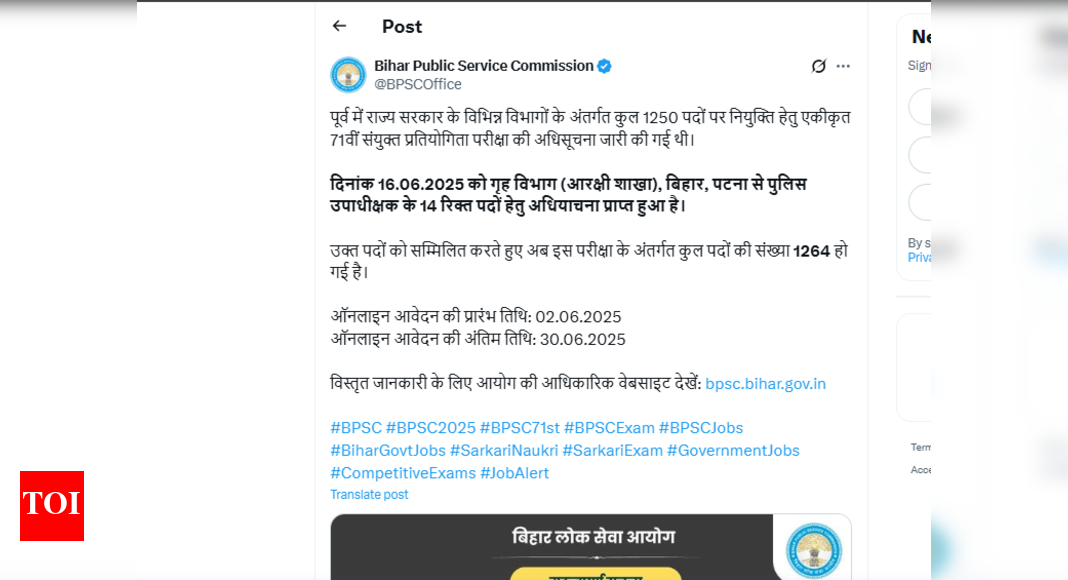 BPSC 71st recruitment 2025: The Bihar Public Service Commission (BPSC) has revised the total number of vacancies for the 71st…