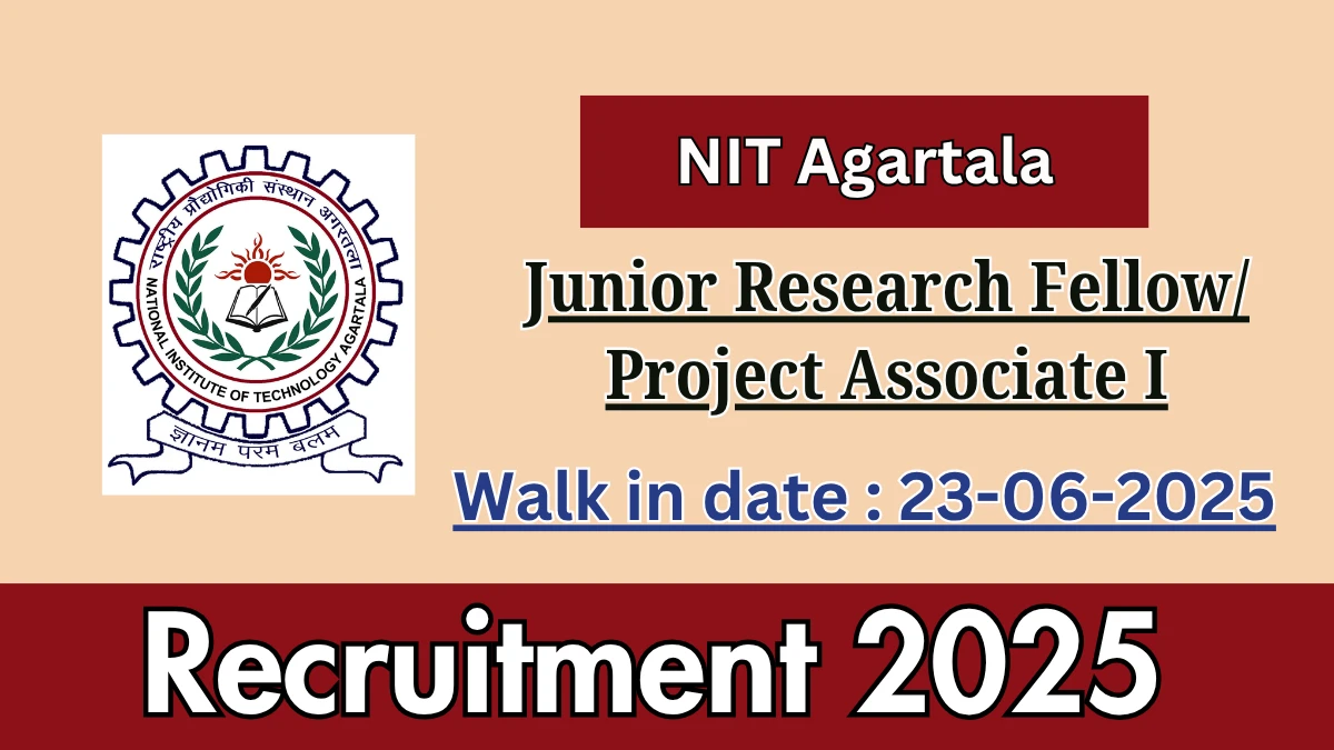 NIT Agartala Recruitment 2025 National Institute of Technology Agartala (NIT Agartala) Recruitment 2025 for 02 posts of Junior Research Fellow/…