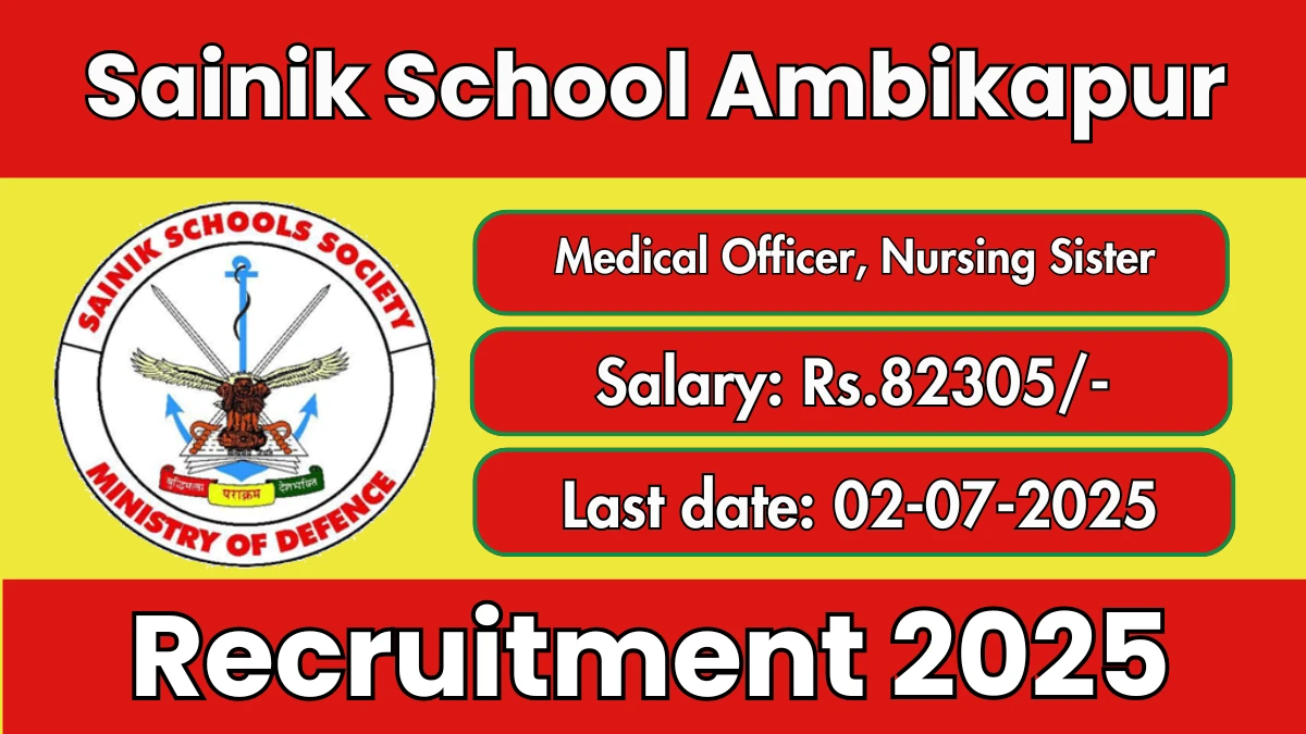Sainik School Ambikapur Recruitment 2025 The Sainik School Ambikapur (Sainik School Ambikapur) Recruitment 2025 for 02 posts of Medical Officer,…