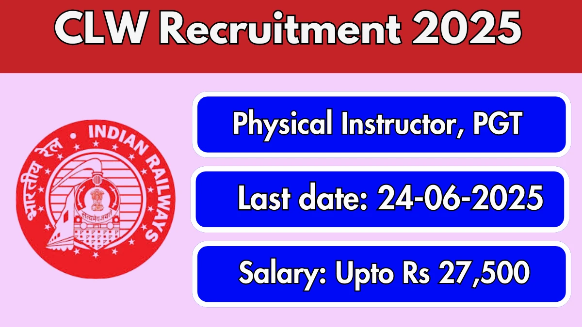 CLW Recruitment 2025 Chittaranjan Locomotive Works (CLW) Recruitment 2025 for 03 posts of Physical Instructor, PGT. Candidates with B.Ed, BPEd,…