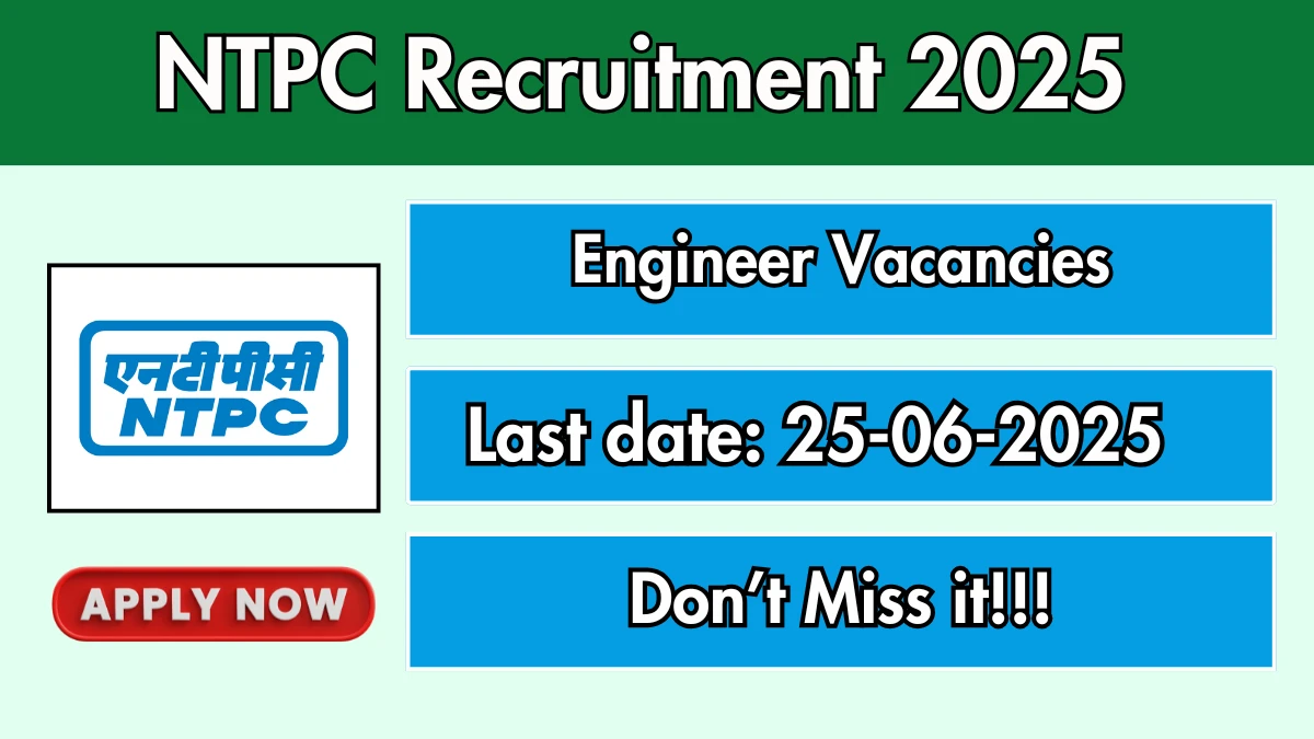 NTPC Recruitment 2025 The National Thermal Power Corporation (NTPC) Recruitment 2025 for 10 posts of Engineer. Candidates with B.Tech/B.E Can…