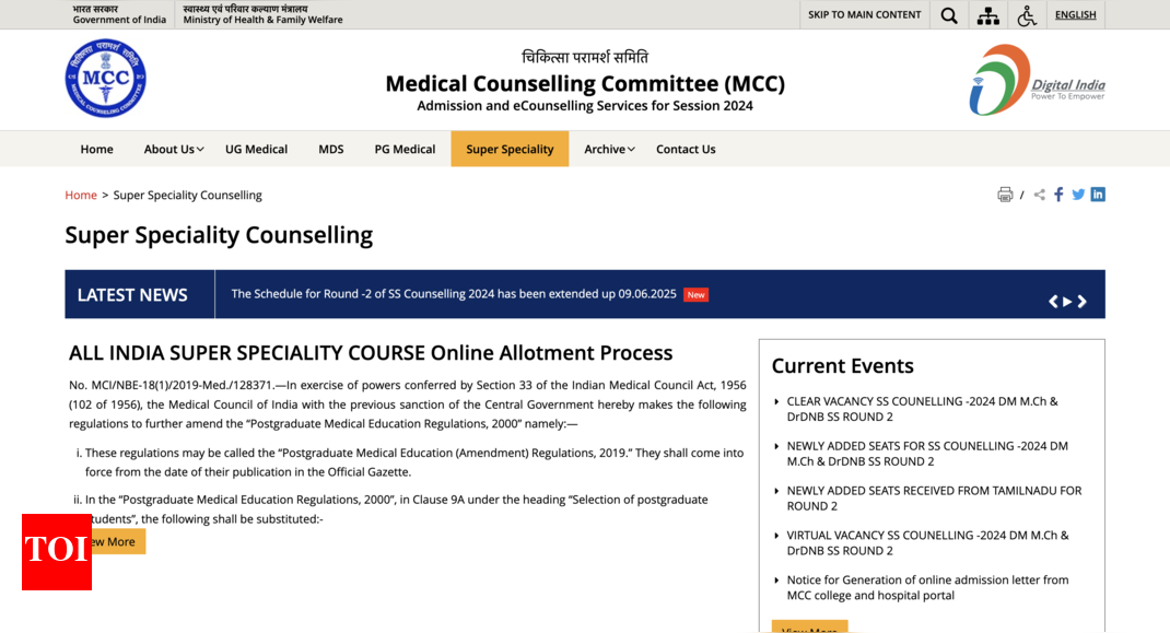 The Medical Counselling Committee (MCC) has announced the extension of choice filling window for NEET SS counselling round 2. Participants…