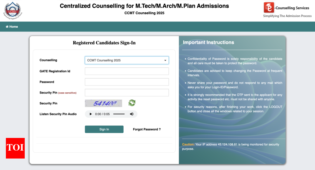 The Centralized Counselling for M.Tech./M.Arch./M.Plan. Admissions (CCMT) 2025 Round 1 seat allotment result has been announced on June 9 at…