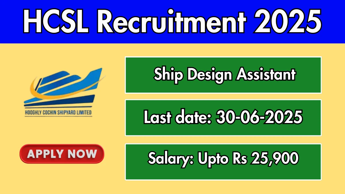 HCSL Recruitment 2025 The Hooghly Cochin Shipyard (HCSL) Recruitment 2025 for 03 posts of Ship Design Assistant. Candidates with Diploma…