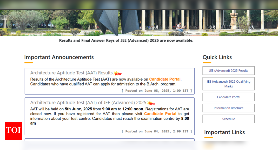 JEE Advanced AAT result 2025: The Indian Institute of Technology Madras has announced the results of the Architecture Aptitude Test…
