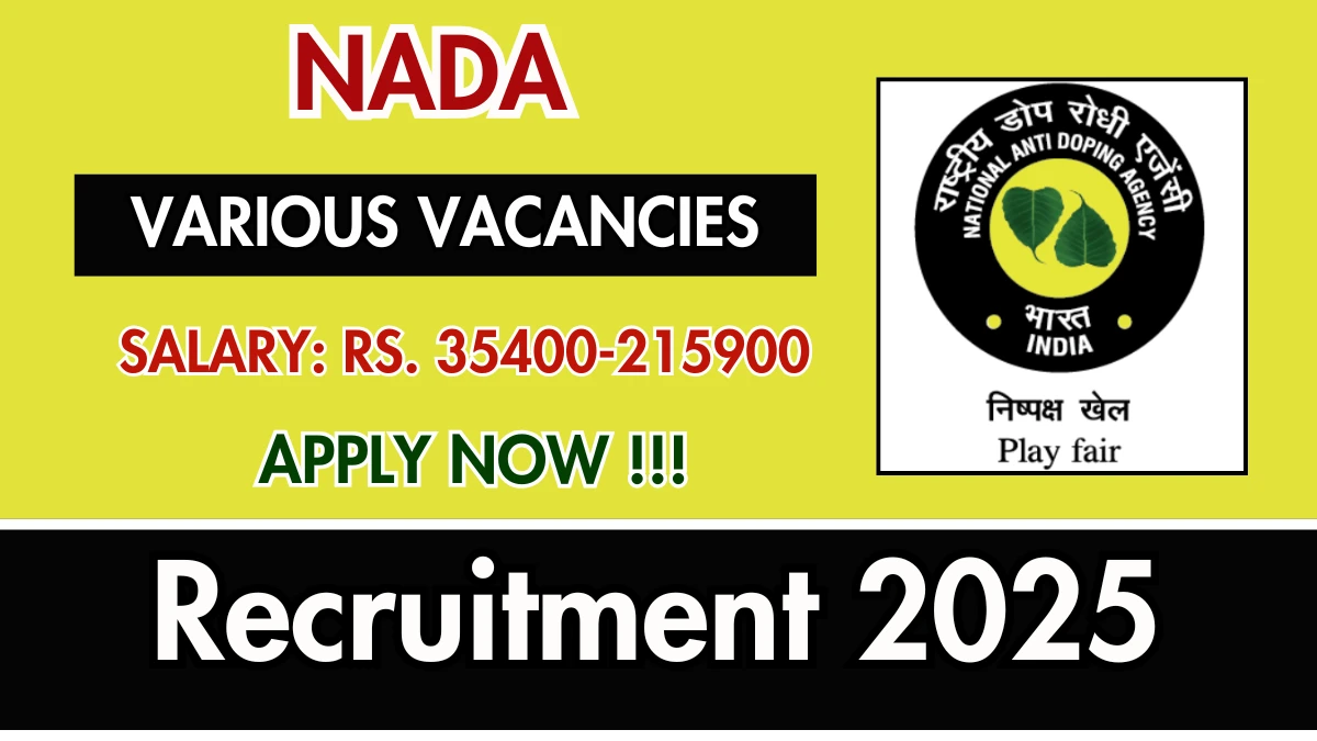 NADA Recruitment 2025 The National Anti Doping Agency (NADA) Recruitment 2025 for 06 posts of Investigator, Law Officer and More.…