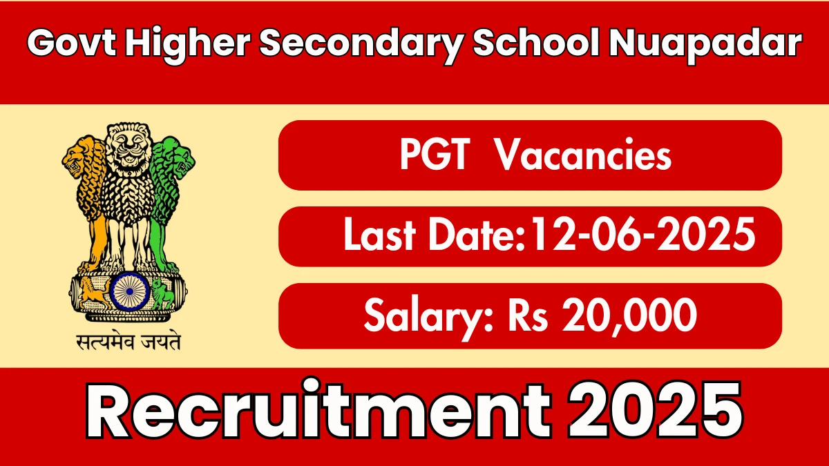 Govt Higher Secondary School Nuapadar Recruitment 2025 The Govt Higher Secondary School Nuapadar Recruitment 2025 for 06 posts of PGT.…