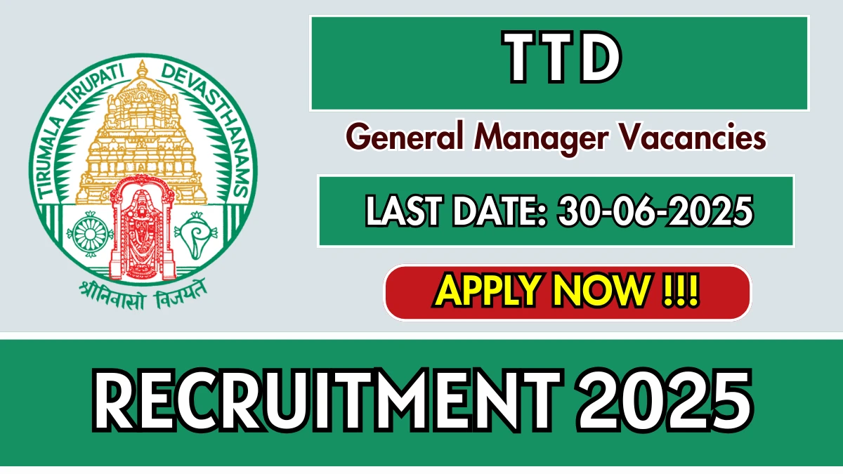 TTD Recruitment 2025 The Tirumala Tirupati Devasthanam Tirupati (TTD) Recruitment 2025 for 01 posts of General Manager. Candidates with B.Tech/B.E,…