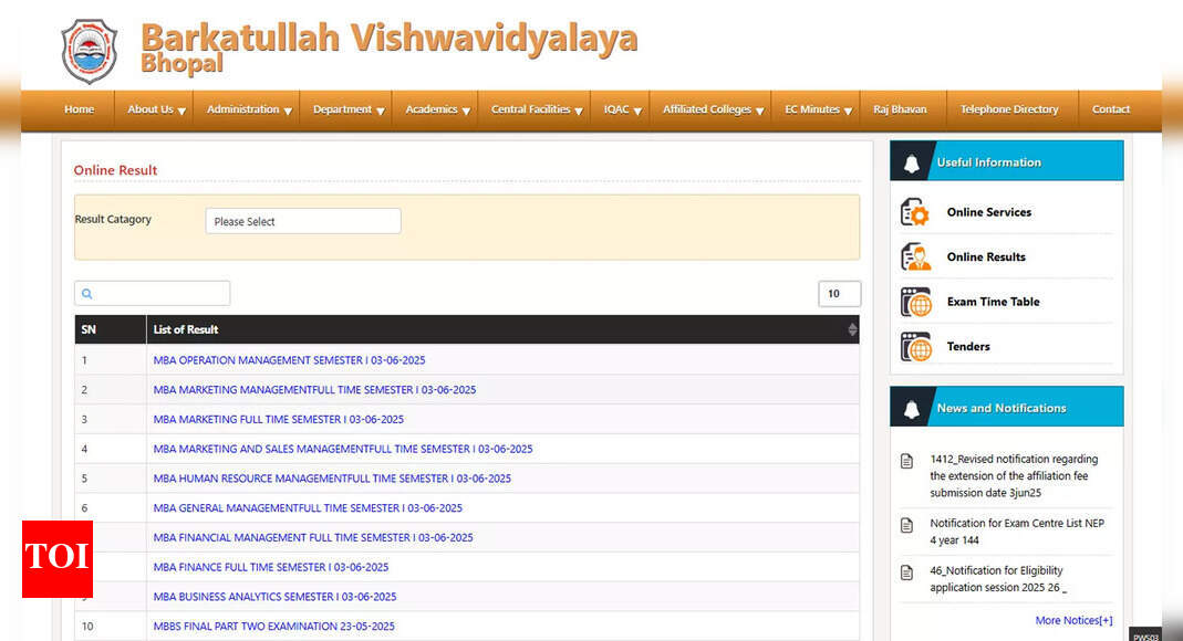 Barkatullah Vishwavidyalaya releases MBA Semester I 2025 results online BU Bhopal MBA Semester I results 2025: Barkatullah Vishwavidyalaya, Bhopal has…
