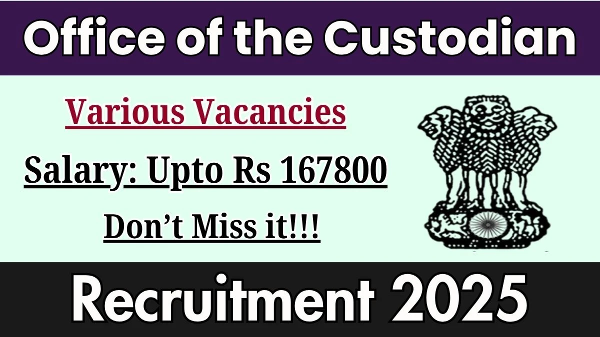 Office of the Custodian Recruitment 2025 The Office of the Custodian Recruitment 2025 for 09 posts of Private Secretary, Assistants…