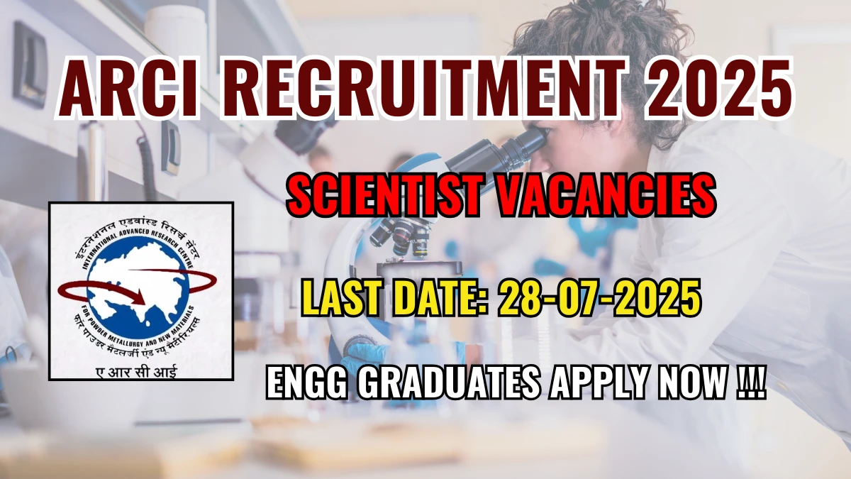 ARCI Recruitment 2025 The International Advanced Research Centre for Powder Metallurgy and New Materials (ARCI) Recruitment 2025 for 11 posts…