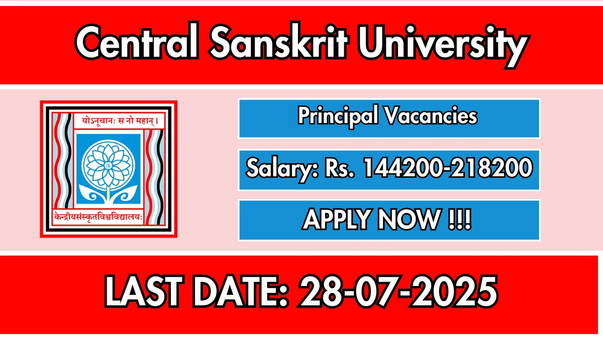 Central Sanskrit University Recruitment 2025 The Central Sanskrit University Recruitment 2025 for 12 posts of Principal. Candidates with Other Can…