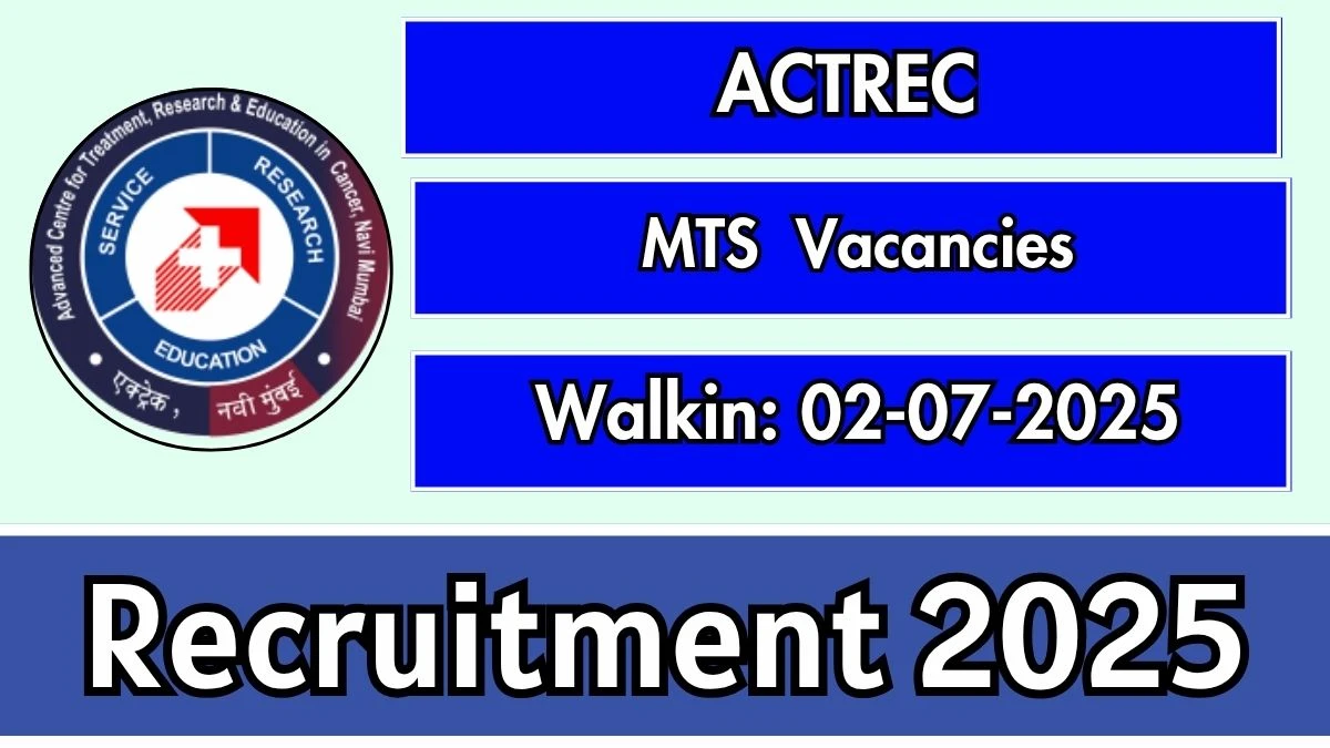 ACTREC Recruitment 2025 Advanced Centre for Treatment Research and Education (ACTREC) Recruitment 2025 for posts of MTS. Candidates with 8TH…