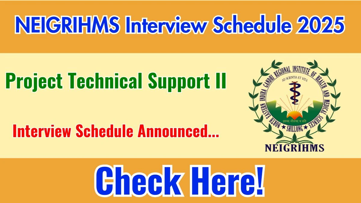 NEIGRIHMS Project Technical Support II Interview Schedule 2025 is officially notified. The Interview Schedule for NEIGRIHMS Project Technical Support II…