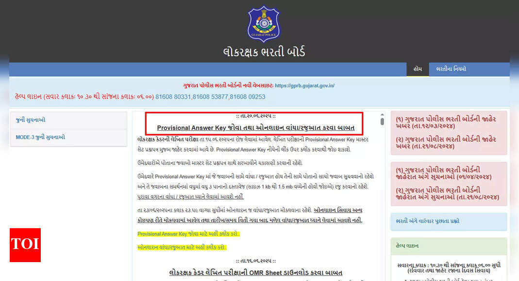Gujarat Lok Rakshak Answer Key 2025 Lok Rakshak Cadre provisional answer key released; submit objections online by June 23 Gujarat…