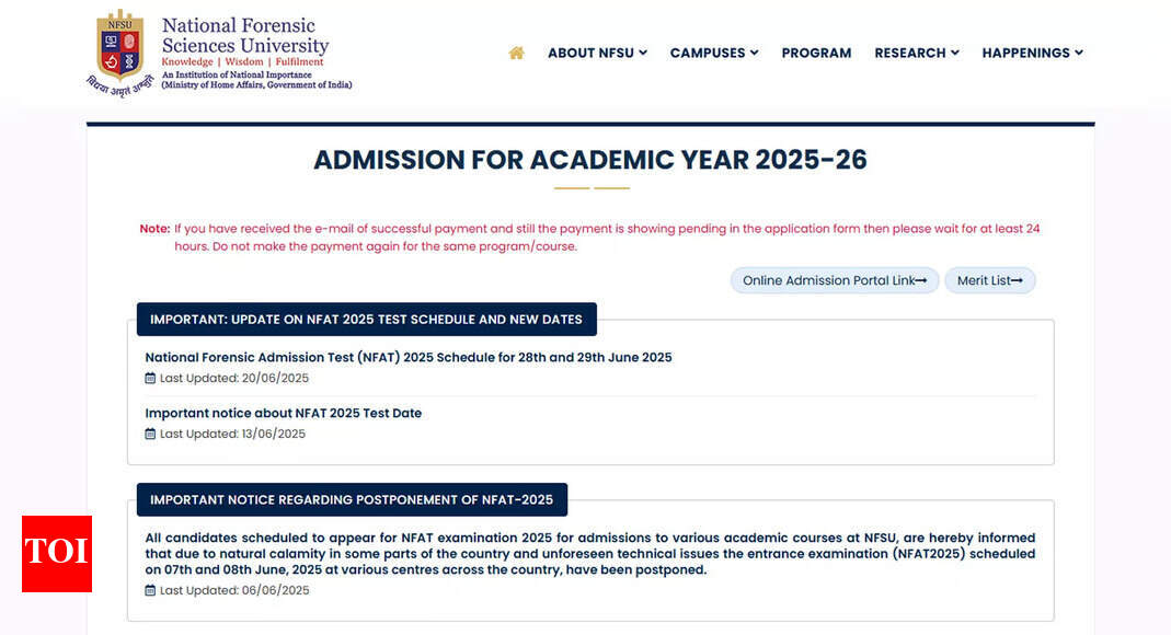 NFAT 2025 timetable out for June 28–29, admit card link coming soon on NFSU website NFSU NFAT schedule 2025: National…