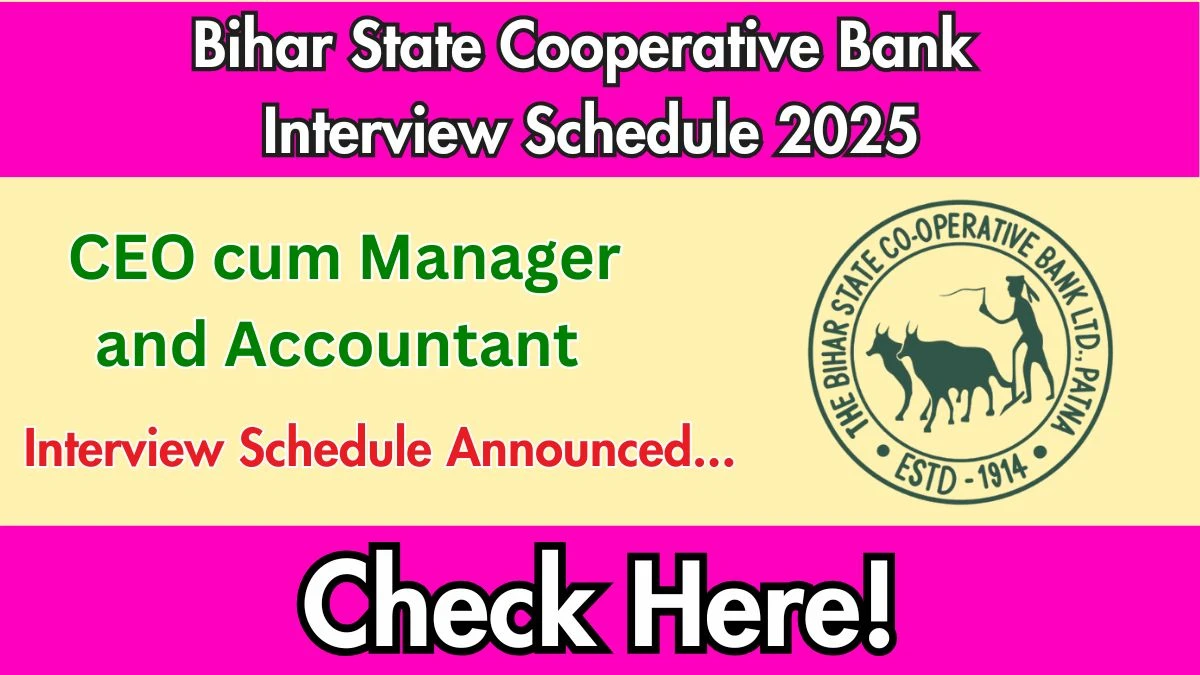 Bihar State Cooperative Bank CEO cum Manager and Accountant Interview Schedule 2025 is officially notified. The Interview Schedule for Bihar…