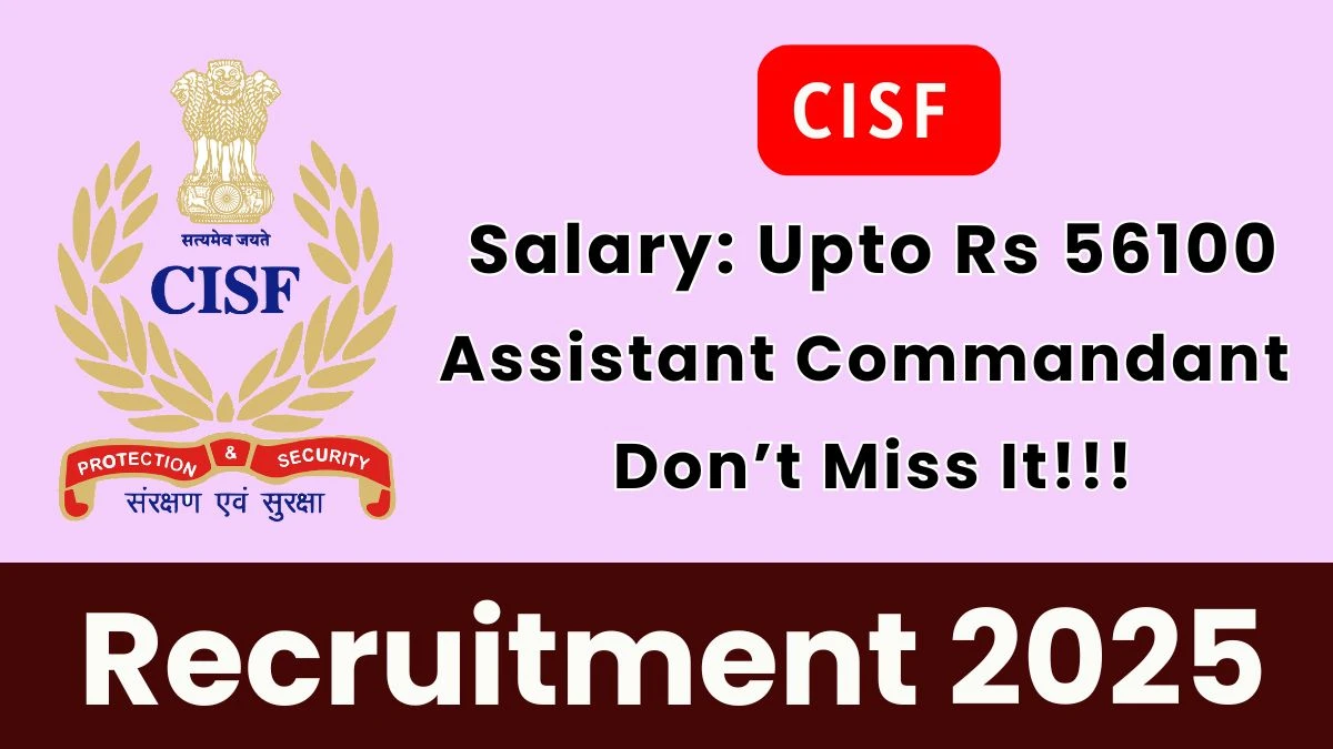CISF Recruitment 2025 The Central Industrial Security Force (CISF) Recruitment 2025 for 01 posts of Assistant Commandant. Candidates Can Apply…