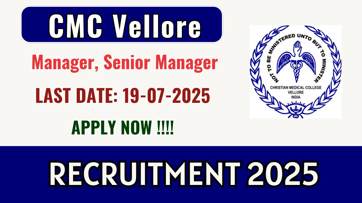 CMC Vellore Recruitment 2025 The Christian Medical College Vellore (CMC Vellore) Recruitment 2025 for posts of Manager, Senior Manager. Candidates…
