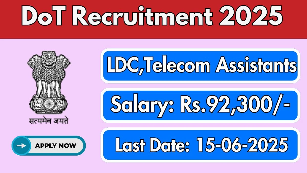 DoT Recruitment 2025 The Department of Telecommunications (DoT) Recruitment 2025 for 4 posts of Lower Division Clerks, Telecom Assistants. Candidates…