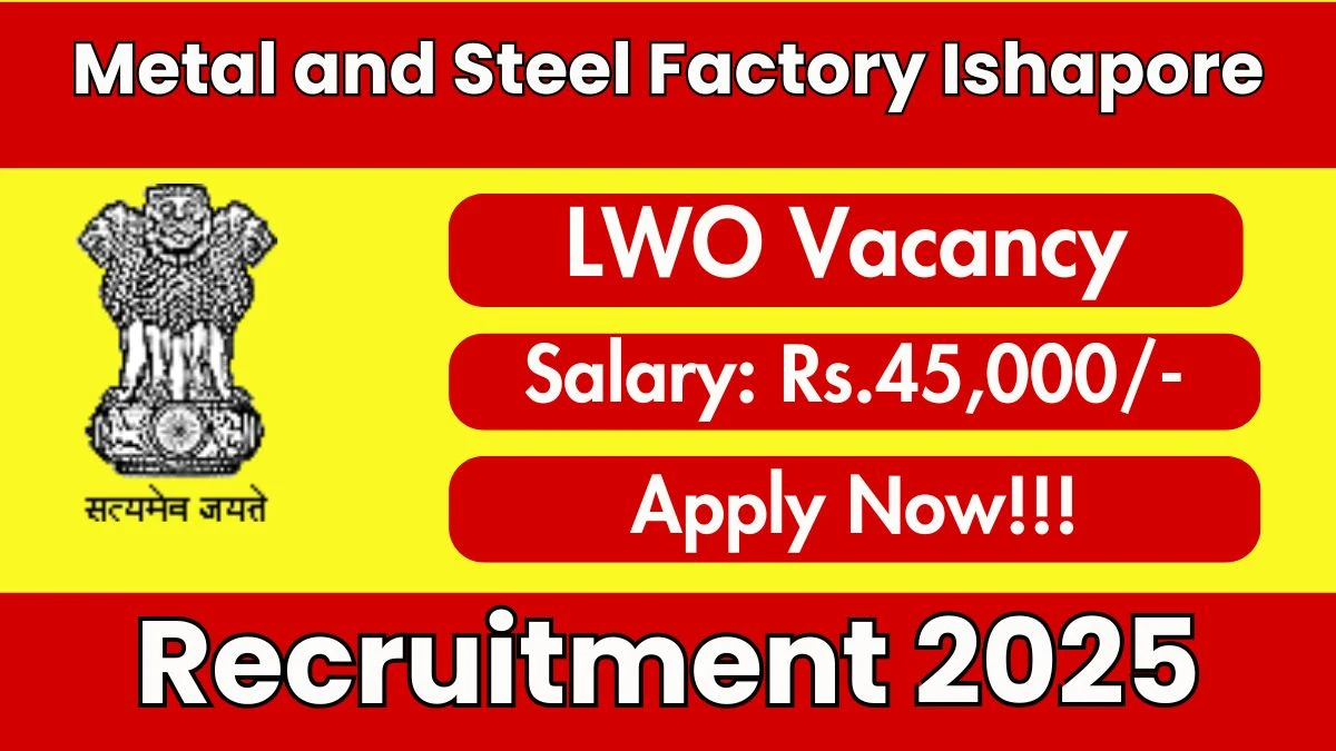 Metal and Steel Factory Ishapore Recruitment 2025 The Metal and Steel Factory Ishapore Recruitment 2025 for 1 posts of Labour…