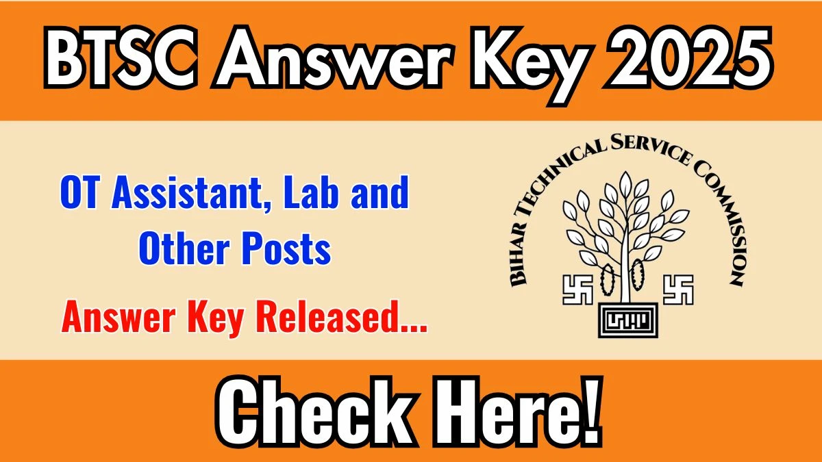 The Bihar Technical Service Commission (BTSC) has officially published the answer key for the OT Assistant, Lab and Other Posts…