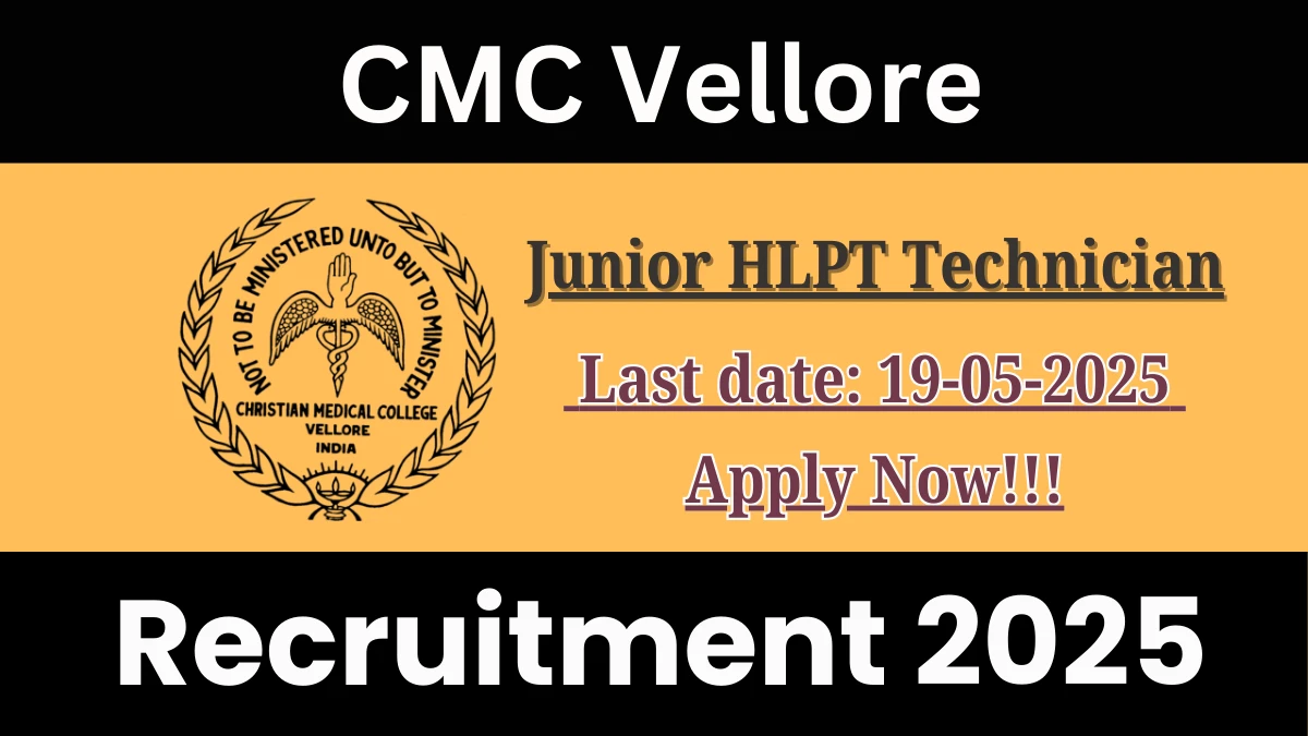 The Christian Medical College Vellore (CMC Vellore) has released an official notification for the recruitment of Junior HLPT Technician posts.…