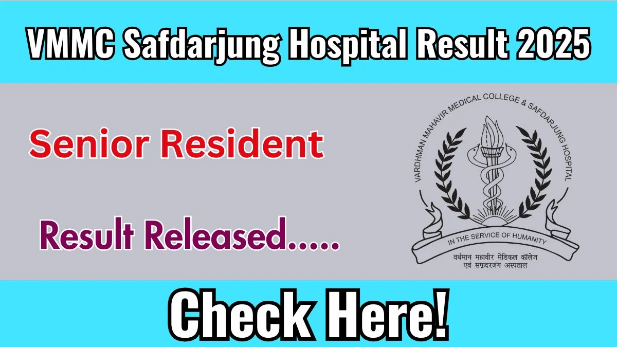 VMMC Safdarjung Hospital Senior Resident Result 2025 Released: The Vardhman Mahavir Medical College and Safdarjung Hospital (VMMC Safdarjung Hospital) has…