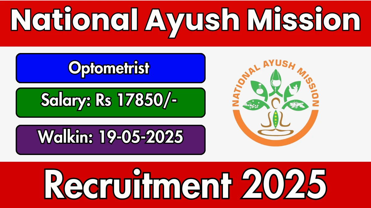 National Ayush Mission Recruitment 2025 National Ayush Mission Recruitment 2025 for 20 posts of Optometrist. Candidates with B.Sc Can attend…