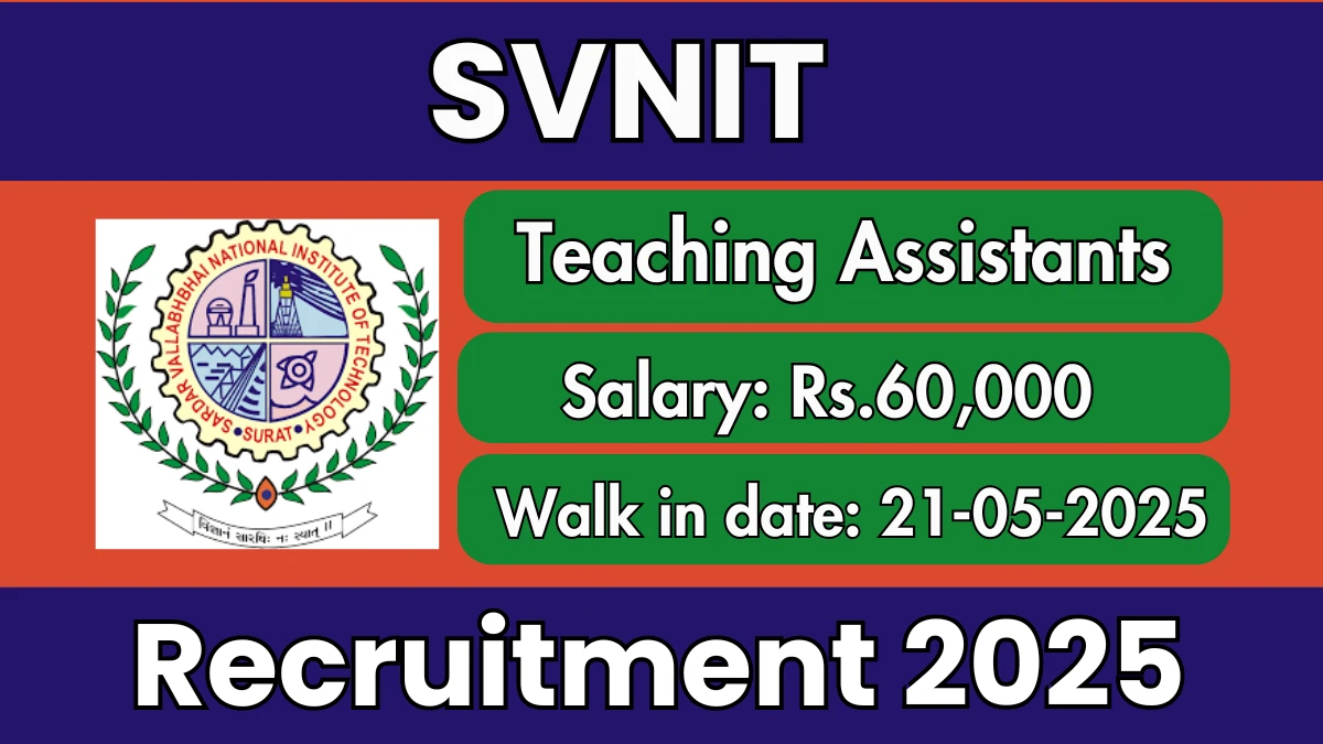 SVNIT Recruitment 2025 Sardar Vallabhbhai National Institute of Technology (SVNIT) Recruitment 2025 for posts of Teaching Assistants. Candidates with B.Tech/B.E,…