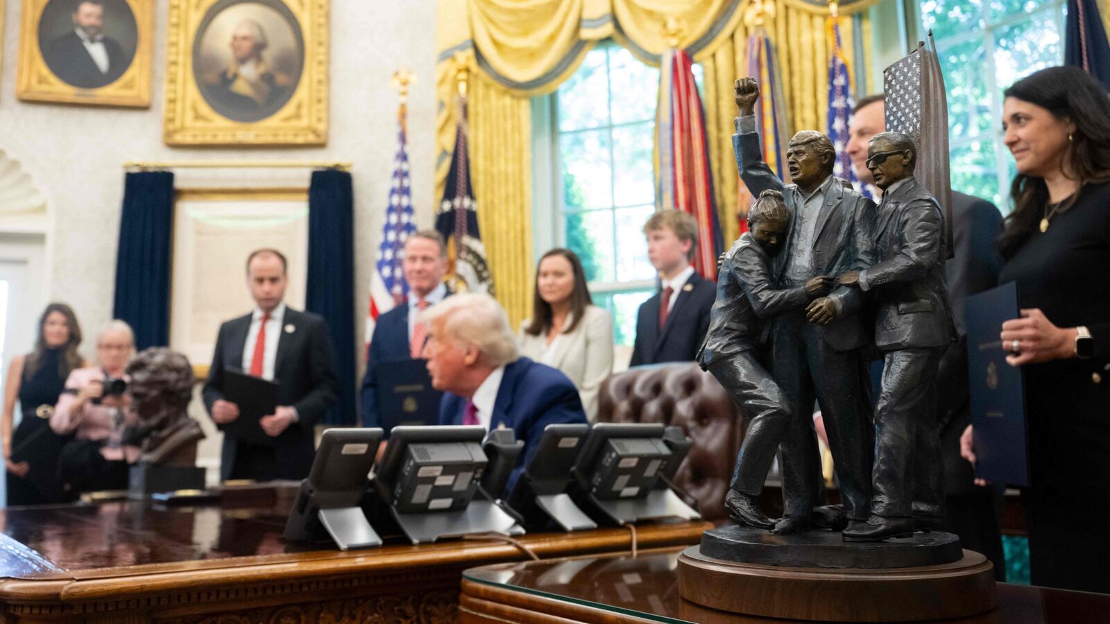US President Donald Trump had installed a new and “powerful” artwork in the Oval Office – a statue depicting the…