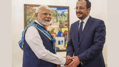 PM Modi and Cyprus President Nikos Christodoulides NEW DELHI: Cyprus on Monday honoured Prime Minister Narendra Modi with the Grand…