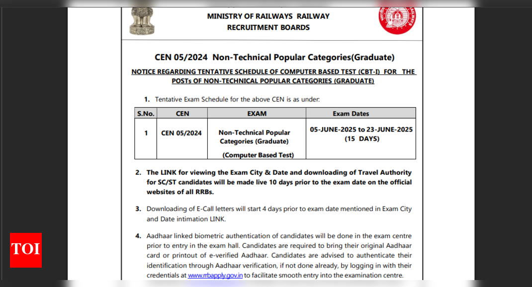 The Railway Recruitment Board (RRB) has officially released the dates for the RRB Non-Technical Popular Categories (NTPC) exam 2025 on…