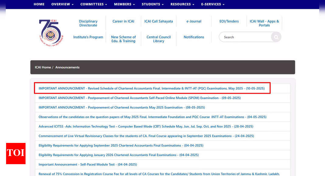 Revised ICAI exam dates announced for CA Final and Intermediate May 2025 ICAI May exam 2025 reschedule: The Institute of…