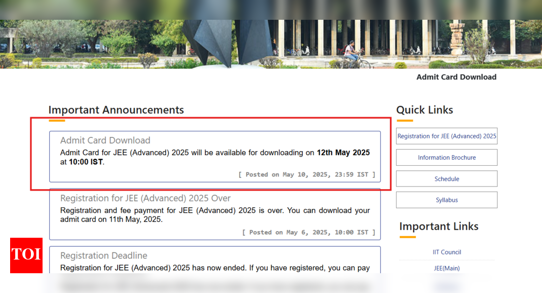 JEE Advanced admit card 2025: The admit card for the Joint Entrance Examination (JEE) 2025 will be released on May…