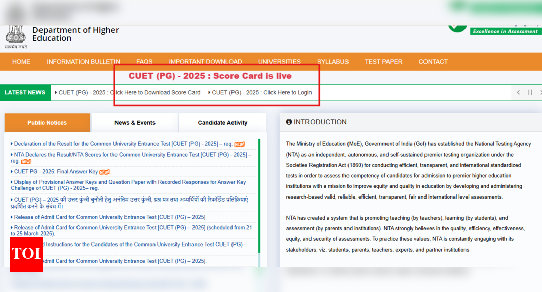 CUET PG result 2025: The National Testing Agency (NTA) has officially announced the results for the Common University Entrance Test…