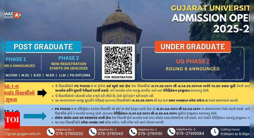 Gujarat University opens PG Phase 1 Round 2 admissions for 2025–26 Gujarat University PG admissions 2025: Gujarat University has officially…
