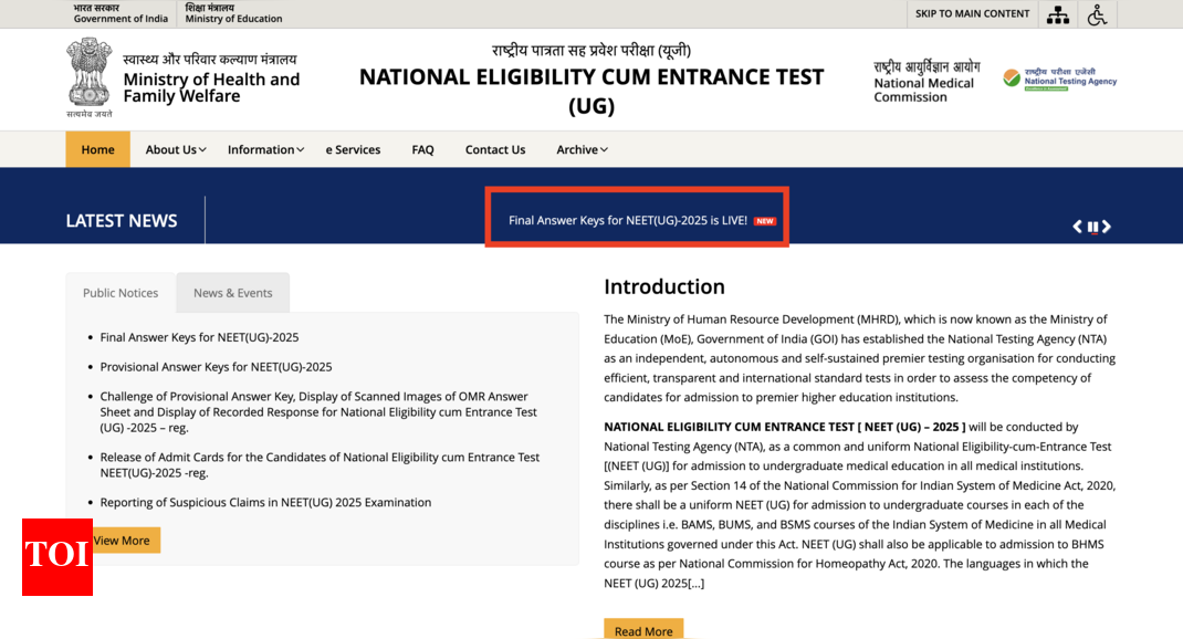 The National Testing Agency (NTA) has issued the final answer key for the National Eligibility cum Entrance Test for undergraduates…