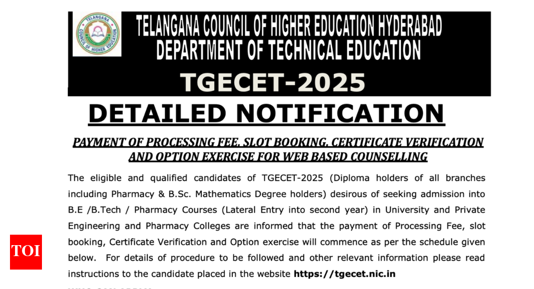 The Telangana State Council of Higher Education (TSCHE), Hyderabad has officially released the counselling schedule for the Telangana State Engineering…