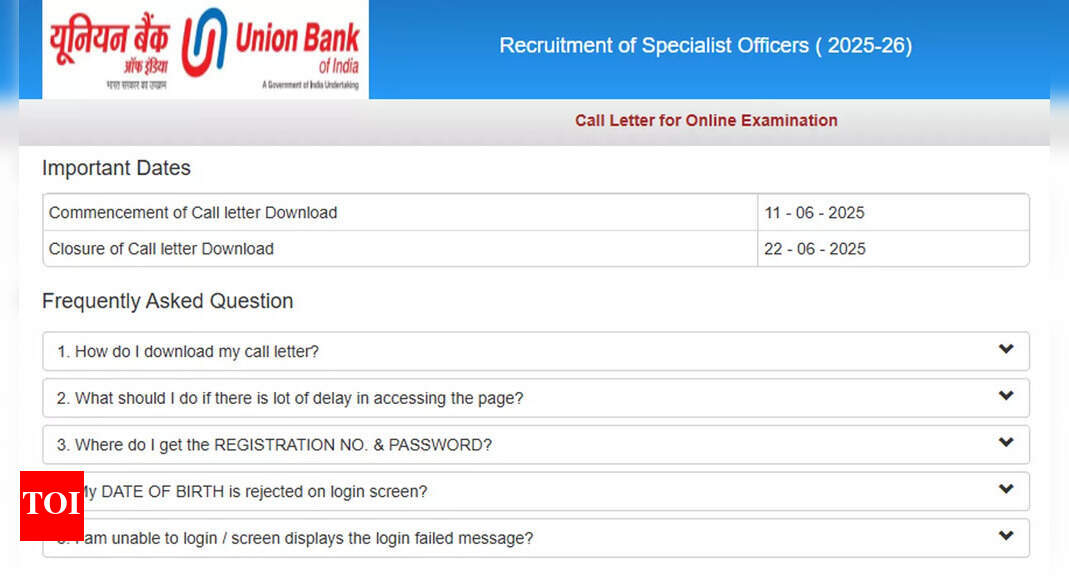 Union Bank SO admit card 2025 released for June 22 exam; download now Union Bank SO admit card 2025: Union…