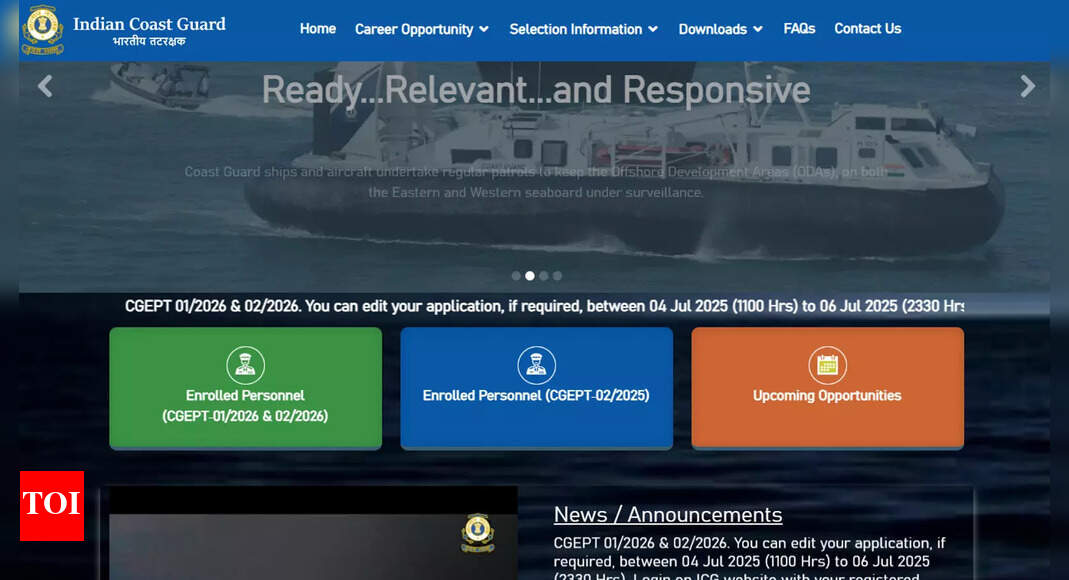 Indian Coast Guard application correction window now open for 630 posts under CGEPT 2025 CGEPT 2025: The Indian Coast Guard…