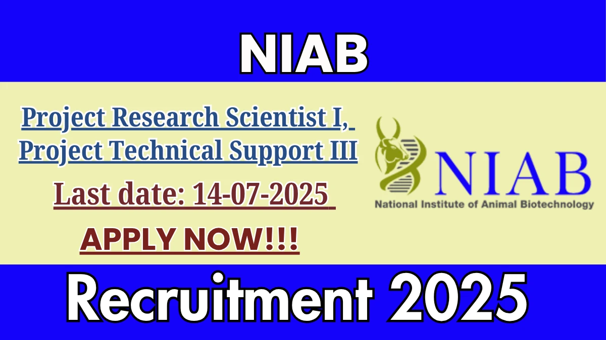 NIAB Recruitment 2025 The National Institute of Animal Biotechnology (NIAB) Recruitment 2025 for 02 posts of Project Research Scientist I,…