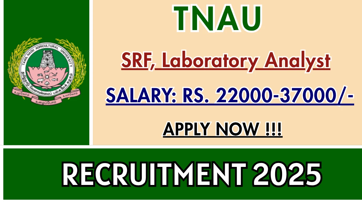 TNAU Recruitment 2025 Tamil Nadu Agricultural University (TNAU) Recruitment 2025 for 03 posts of Senior Research Fellow, Laboratory Analyst. Candidates…